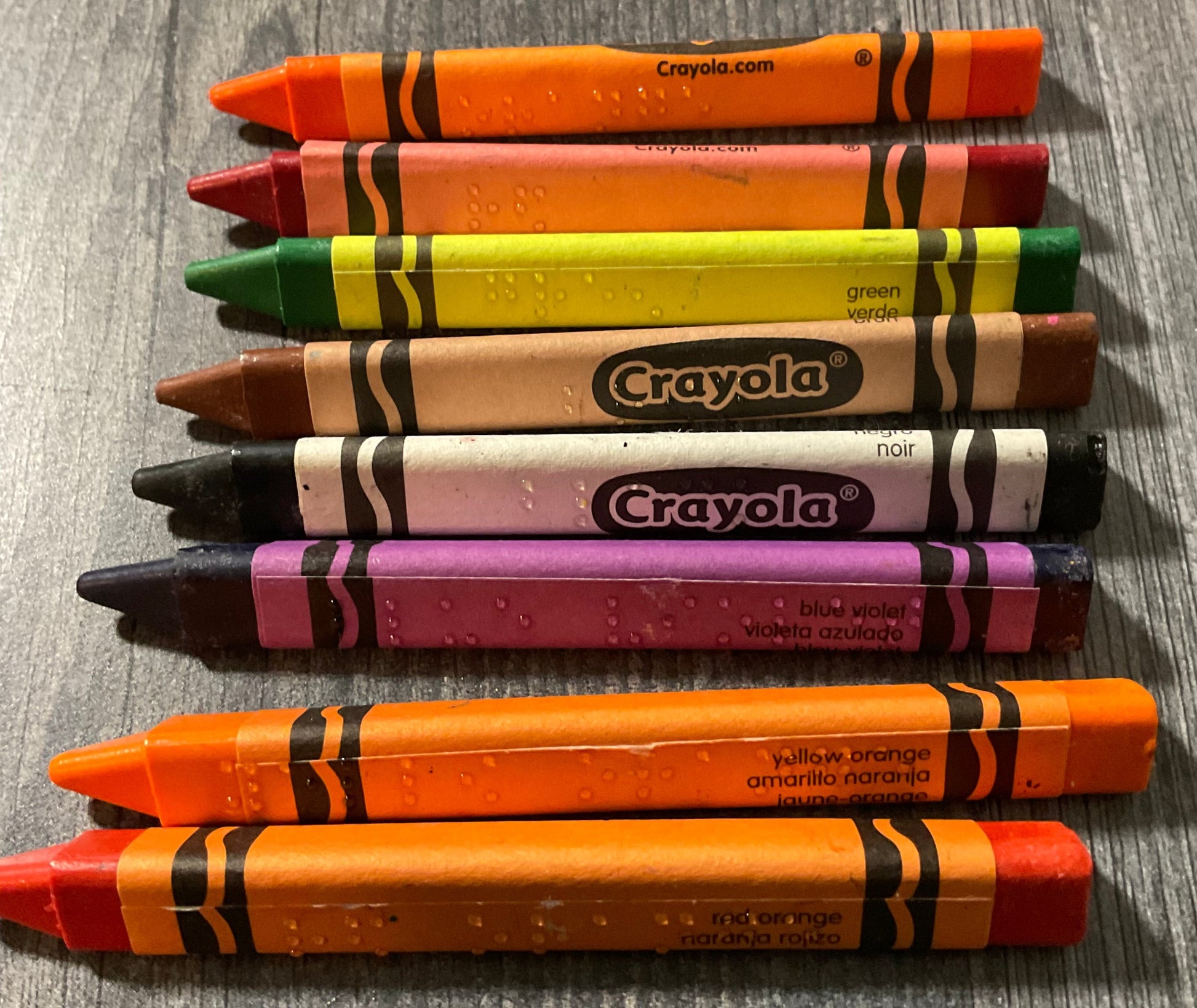 These Crayola Anti-Roll Triangular Crayons with 16 colors have braille printed on them.