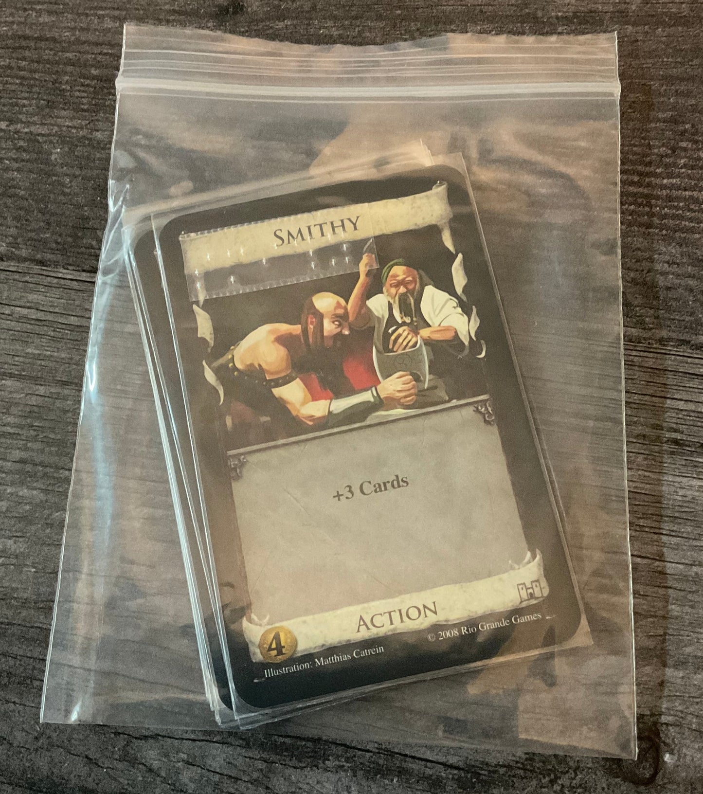 Dominion is not a CCG, but the play of the game is similar to the construction and play of a CCG deck. The game comes with 500 cards. You select 10 of the 25 Kingdom card types to include in any given play—leading to immense variety.